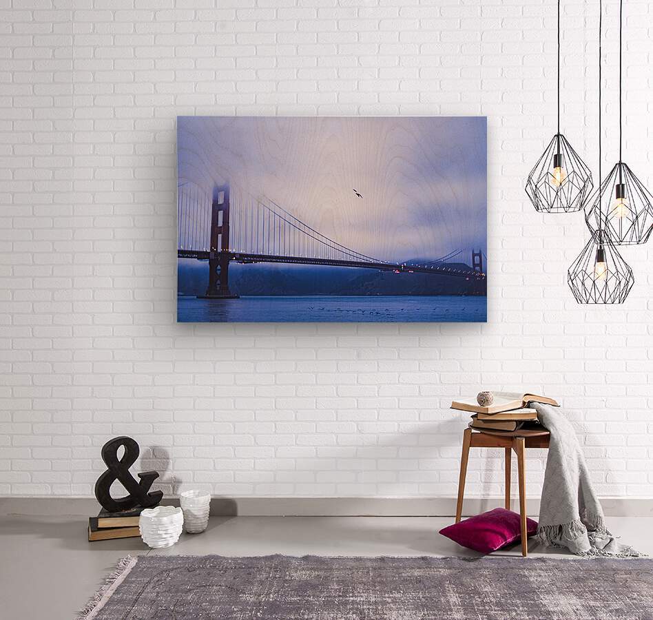 The Golden Gate Bridge in San Francisco, blanketed in fog, is an image that gives a strange sense of calm and serenity. Taken at a time of day that gives amazing light quality and gorgeous blues, silvers, and grays, this sight is truly one to see in person. However, if you can't, hang it on your wall!