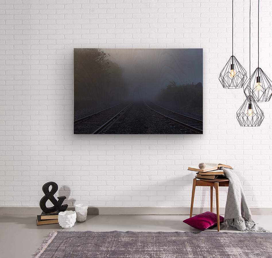 Dual train tracks lead you into heavy fog and mystery. Let your imagination take you away whenever you look at this photo and dream of where those tracks would take you.