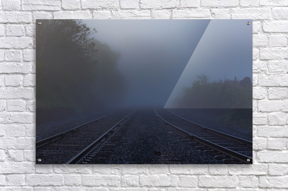 Dual train tracks lead you into heavy fog and mystery. Let your imagination take you away whenever you look at this photo and dream of where those tracks would take you.